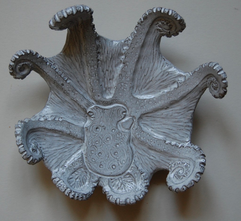 This woven tray was the first piece I made during her class and I continued working on my own afterwards. I love the way the white glaze breaks on the texture and shows the detail nicely.