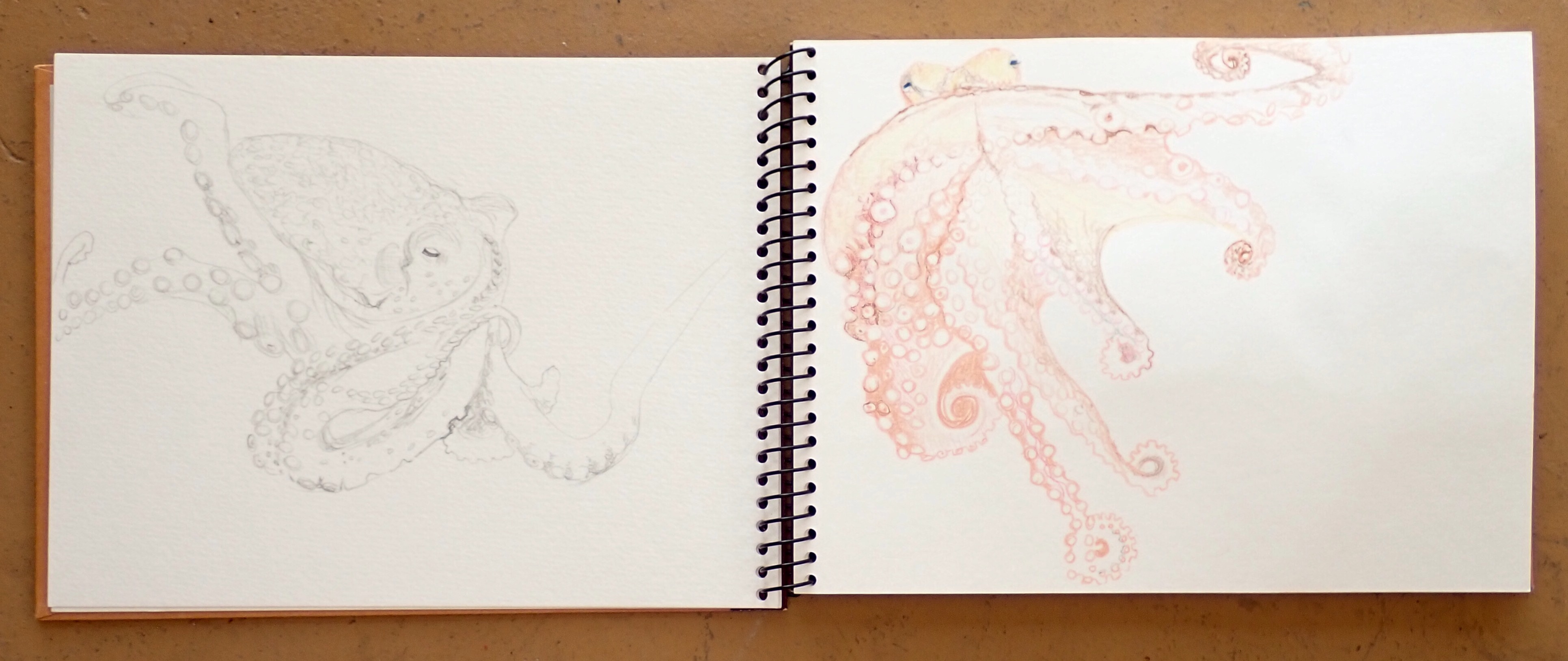 Sometimes you just have to make what you have to make and this sperm whale butter dish happened. I approach ceramics from the perspective of a printmaker and I love the sgraffito effect. It is similar to carving print blocks and I think the contrast between the dark clay and the white underglaze is beautiful. Although the Pot Shop in Evanston has re-opened, I hope to continue building some pieces from home using this beautiful clay!